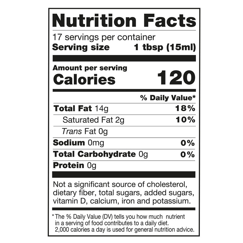 • Healthy eating and healthy lifestyle: all-natural, non-GMO, trans fat-free, cholesterol-free, sugar-free, sodium-free and gluten-free with heart-healthy fatty acids and antioxidants. Glass bottles for better taste and environmental sustainability.