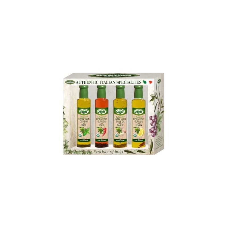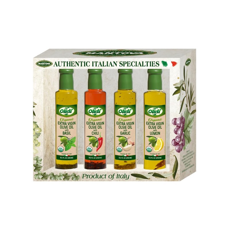Olidi Organic Flavored Extra Virgin Olive Oil Set: Garlic, Basil, Chili, Lemon, 8.5 Fl Oz (Pack of 4)