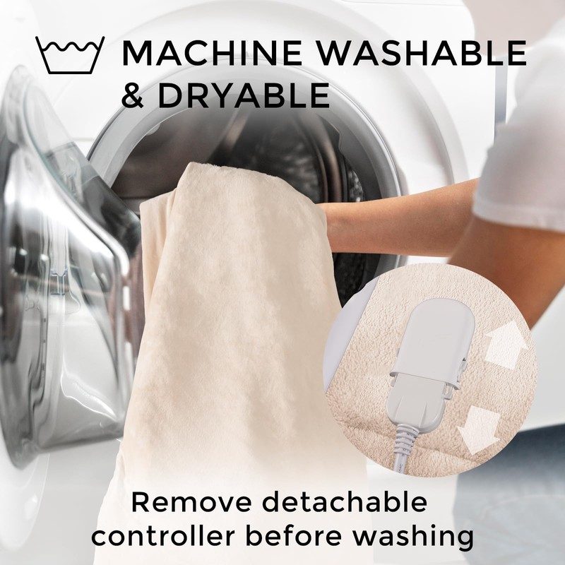 - Machine Washable and Dryable: The heated throw blanket is very convenient to clean and care. Just unplug the controller and toss it into the washing machine. We also made it dryer safe for more easy and convenient cleaning. And for drying, to keep the electric heated blanket twin being its best, we recommend air-drying or low-temperature drying, and do not plug in until it's completely dry