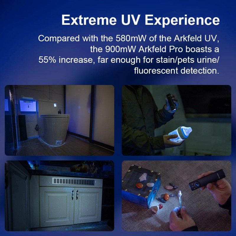 - Enhanced UV: High-power output of up to 900mW at a 365nm wavelength, offering a purer and more professional UV light experience compared to standard 395nm UV lights.