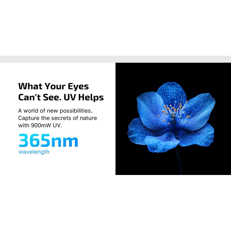 - 900 mW UV Light: Powerful UV light is great for detecting counterfeit money, mineral identification, and cleanliness checks.