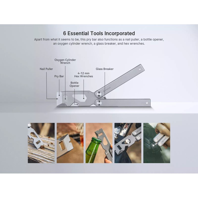 - Ingenious 6-in-1 Design: Incorporates a pry bar, a nail puller, an oxygen cylinder wrench, a bottle opener, a glass breaker, and hex wrenches for various tasks.