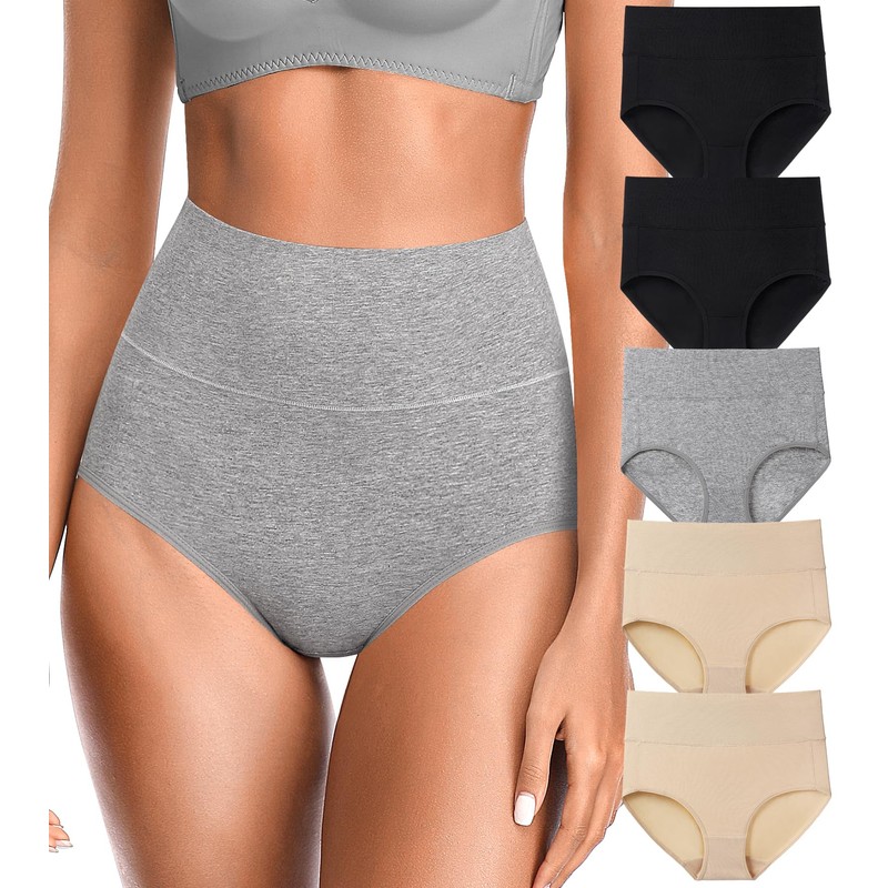 OLIKEME Women Underwear Postpartum Panties Tummy Control High Waisted Underwear Stretch Full Coverage Briefs Breathable Soft Comfy Ladies Panties, 5-pack Size XXL