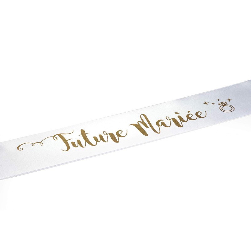 OLILLY Hen Party Sash for a Bride to Be in French - Echarpe pour Future Mariée (Blanche et Or)