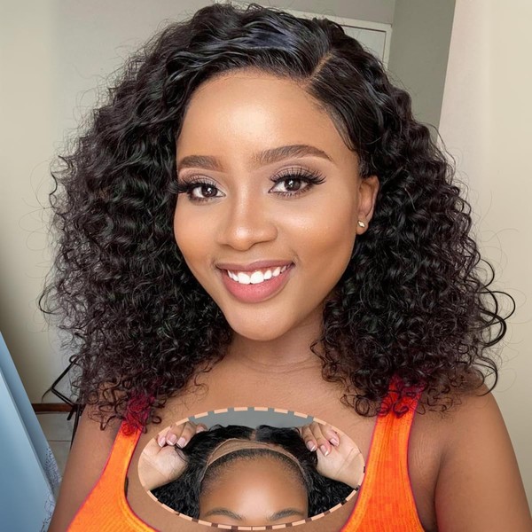 olimaruly Wear and Go Glueless Wigs Human Hair Pre Plucked Pre Cut Deep Curly Bob Wigs Human Hair for Black Women No Glue Lace Front Wigs for Beginners Short Curly Bob Human Hair Wig 10 Inch