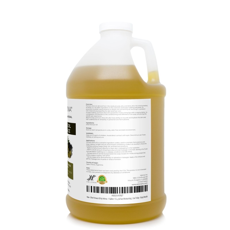 velona Olive Pomace Oil 1 Gallon / 128 Fl Oz | 100% Pure and Natural Carrier Oil | Refined | Skin, Hair, Body & Face Moisturizing | Use Today - Enjoy Results.