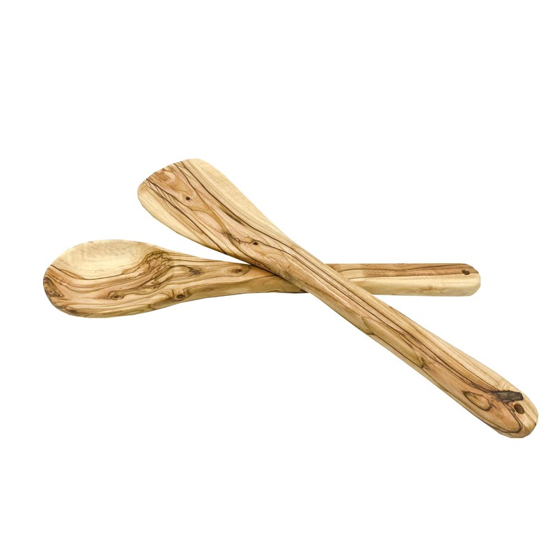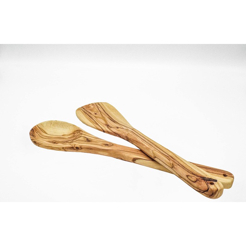 Olive Wood Spoon & Curved Spatula (12 Inch Set of 2 Pieces), Wooden Utensils, Turner/Spatula/Spoon for Every Day Cooking, From Bethlehem
