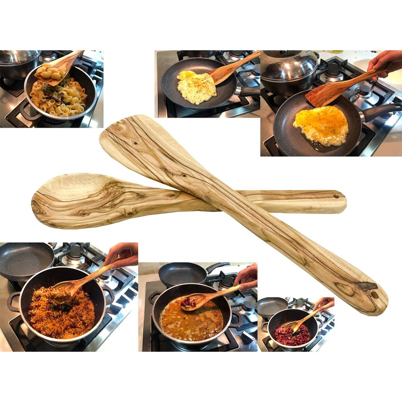 - DURABLE KITCHEN UTENSIL: Carefully handmade Spoon (Length 12", Width 2.5"), Spatula (Length 12", Width 2.7") from the finest Natural Quality Olive Wood material pruned from the hills of the Holy Land.