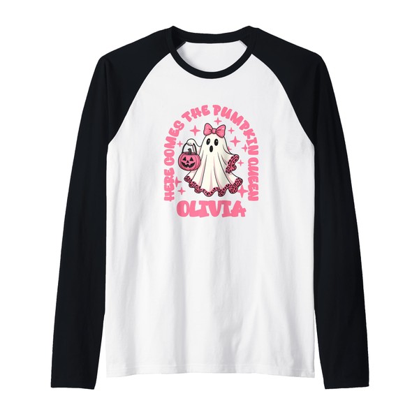 Olivia Custom Here Comes The Pumpkin Queen Raglan Baseball Tee