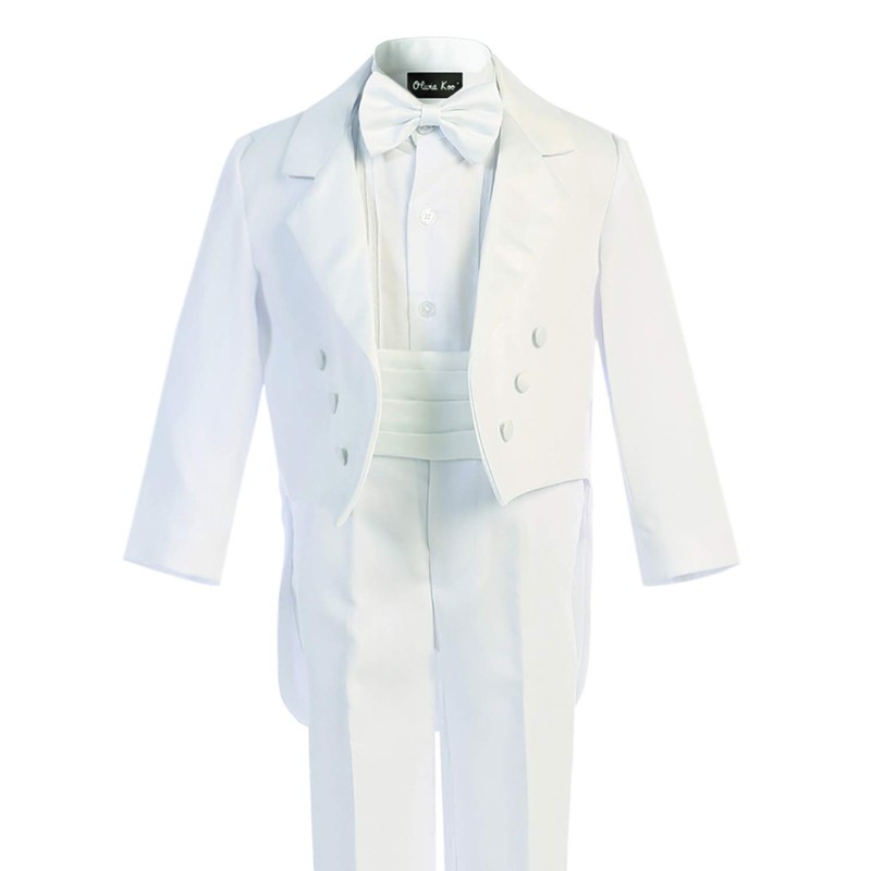 OLIVIA KOO Boy's Classic Ring Boy Signature Tuxedo Set with Tail White