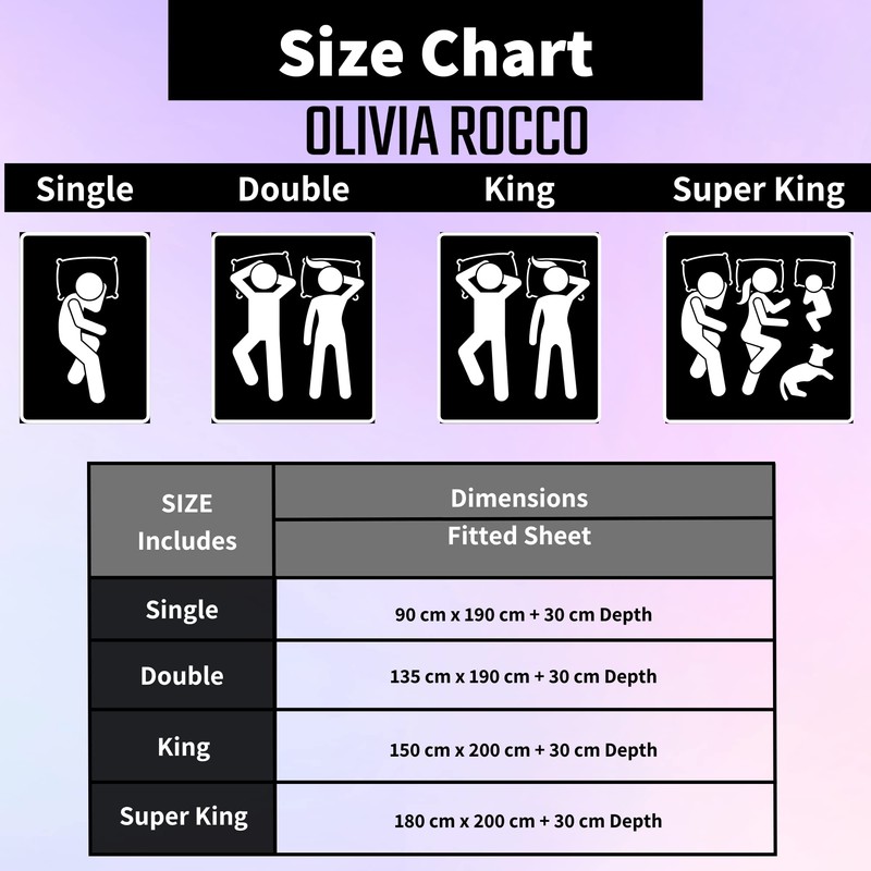 - ALL BEDS COVERED: Available in Four Sizes Single - 90 cm x 190 cm + 30 cm Depth, Double- 135 cm x 190 cm + 30 cm Depth, King - 150 cm x 200 cm + 30 cm Depth, Super King - 180 cm x 200 cm + 30 cm Depth