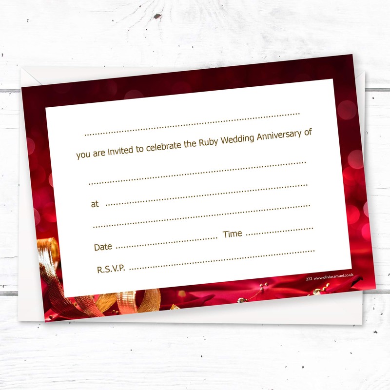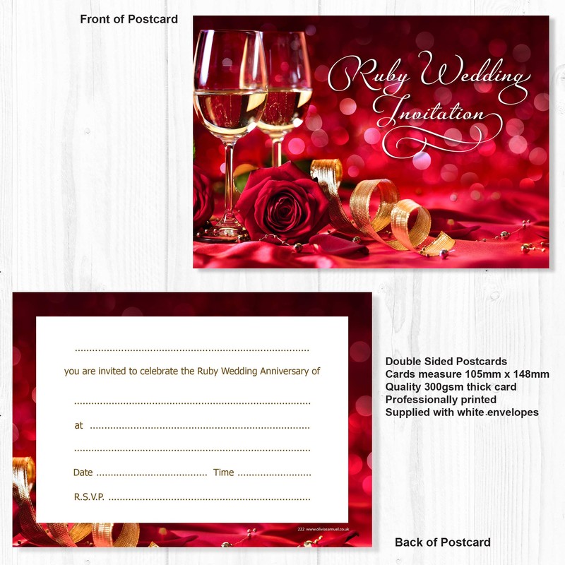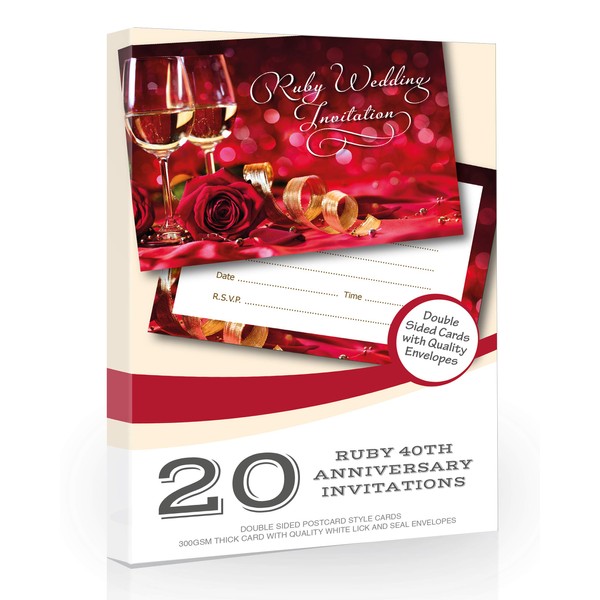 - Pack of 20 high quality Ruby Anniversary Party Invitations ✩ A6 Size (105mm x 148mm) ✩ Professionally printed both sides ✩ Supplied with white envelopes