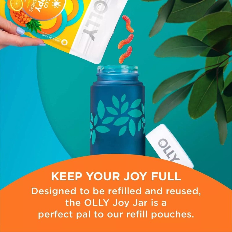 - WHAT’S INCLUDED: Limited-edition bundle includes the OLLY Joy Jar + Hello Happy Pouch 90ct. The Joy Jar is designed to be reused to your heart’s content. It’s the perfect pal to our refill pouches—a match made in planet-friendly heaven.