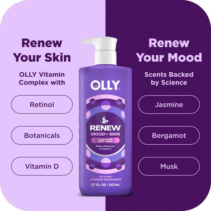 • Renew Your Skin + Mood: OLLY RENEW MOOD + SKIN Body Wash is scientifically formulated to repair your skin barrier overnight, while mood-transforming fragrances are proven to help you prep for bed