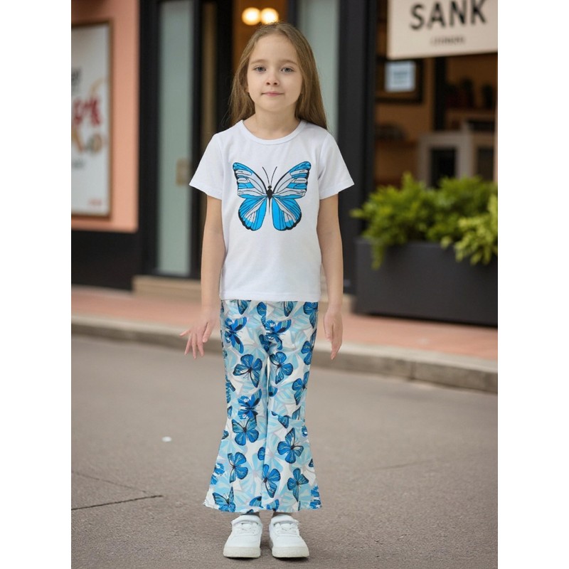 OLMRJKD Kids Toddler Girl Clothes Outfits Short Sleeve Butterfly Graphic Top + Flared Leg Pants 2PC Spring Summer Clothing Set(7-8T)