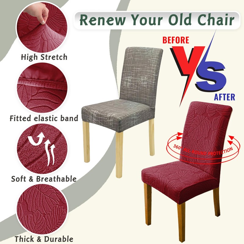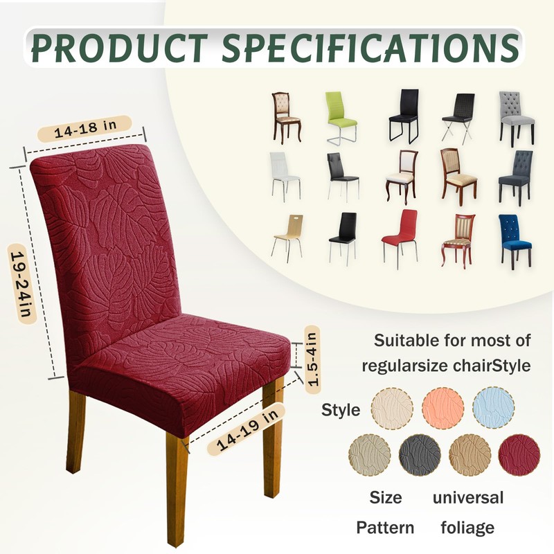 - Highly elastic fabric: Dining room chair cover is made of high-quality elastic fabric of polyester and spandex, which is soft and comfortable, sweat-absorbent and breathable, wear-resistant and wrinkle-resistant. The elastic band sewn on the edge fits the dining chair perfectly to ensure that the dining chair cover is firmly fixed and will not slip or wrinkle. The stylish leaf pattern design is more warm and suitable for home decoration in various styles