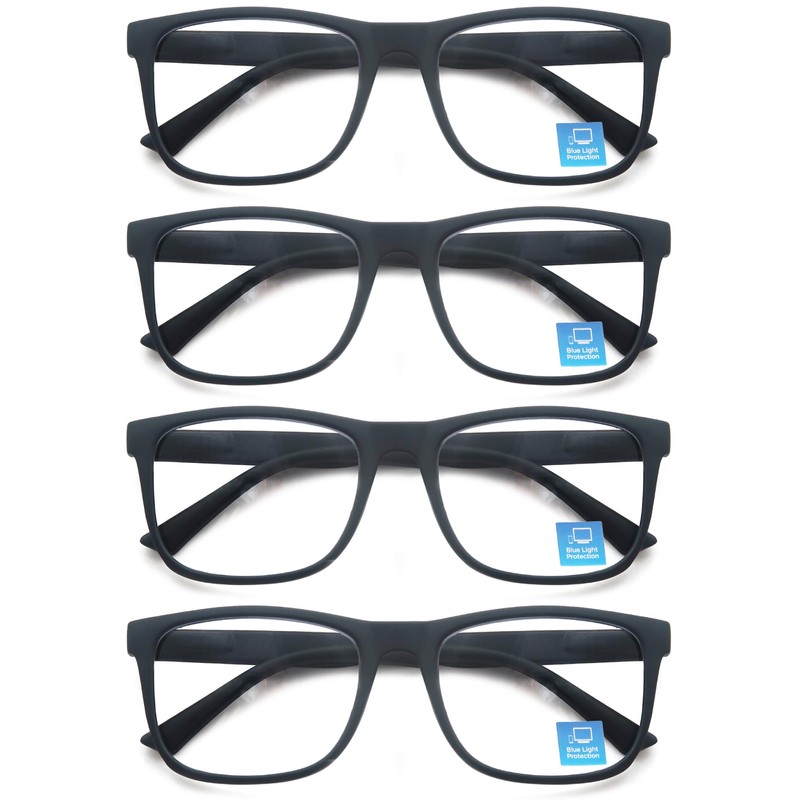 - đăPackage Detailsă-4 pairs of blue light reading glasses + 4 pcs of soft cases + 1 pc of cleaning cloth.You can leave the mens readers/male cheaters reading glasses in the company,bedroom,kitchen,car,bag or around your house where you need,you can always have the readers.Great value and super convenient.