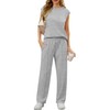 OLRIK Womens Two Piece Sets Summer Outfits Sleeveless Wide Leg Sweatsuit Set Casual Lounge Sets With Pockets Light Grey-S