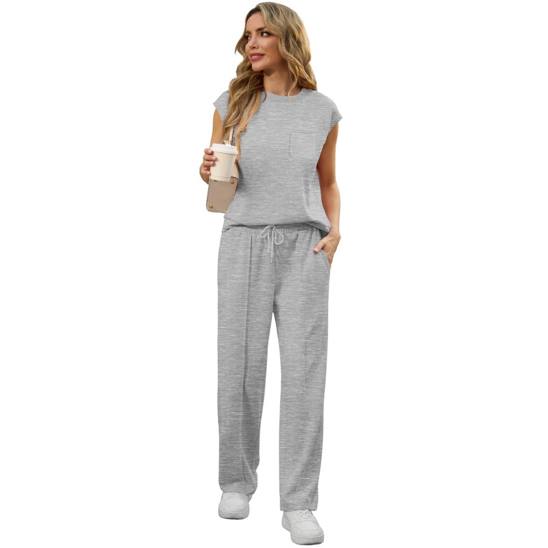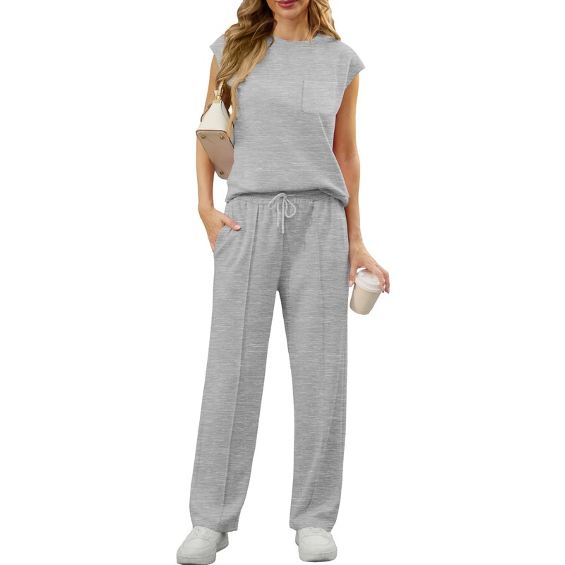 - Highlights: This crewneck top with sleeveless design to ensure you can stay cool and comfy in the hot summer. And the high elastic waist long pants with drawstring make it easy to take off or down. This lounge sets for women has a slouchy relaxed fit that perfect for a cozy instant outfit, can be worn as lounge sets also sweatsuit set / workout set. For people who like simple dressing styles, it's a awesome summer outfits.