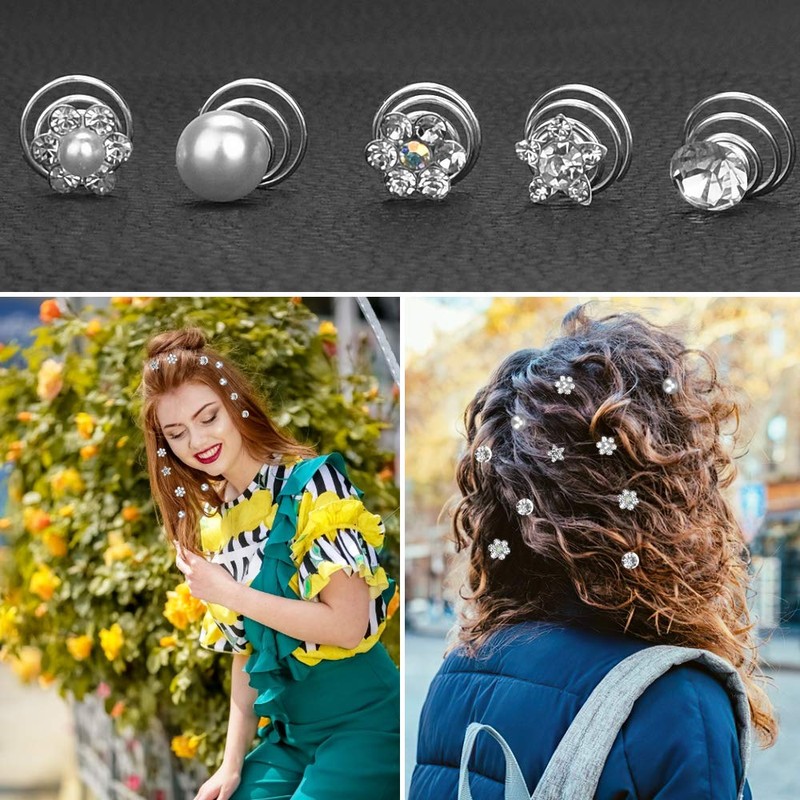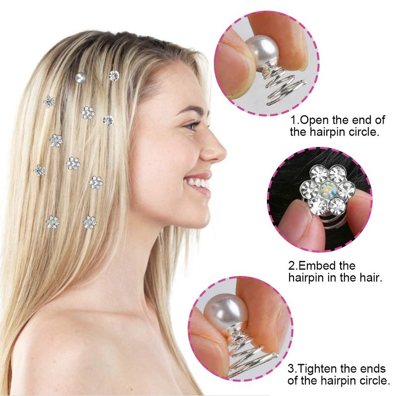 - ✨[Spiral Design] The decorative rhinestone hair clips have a spiral design, which is very easy to use. Simply screw it into the hair. Spiral hair clip can stick firmly to the hair without worrying about it getting lost