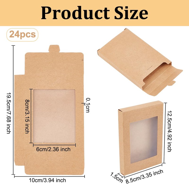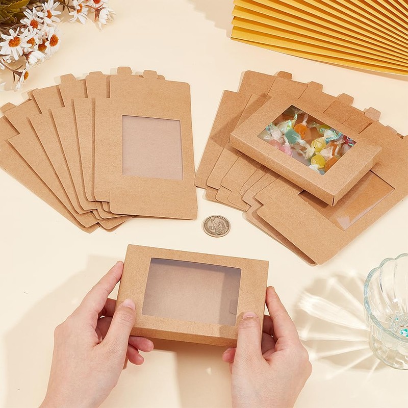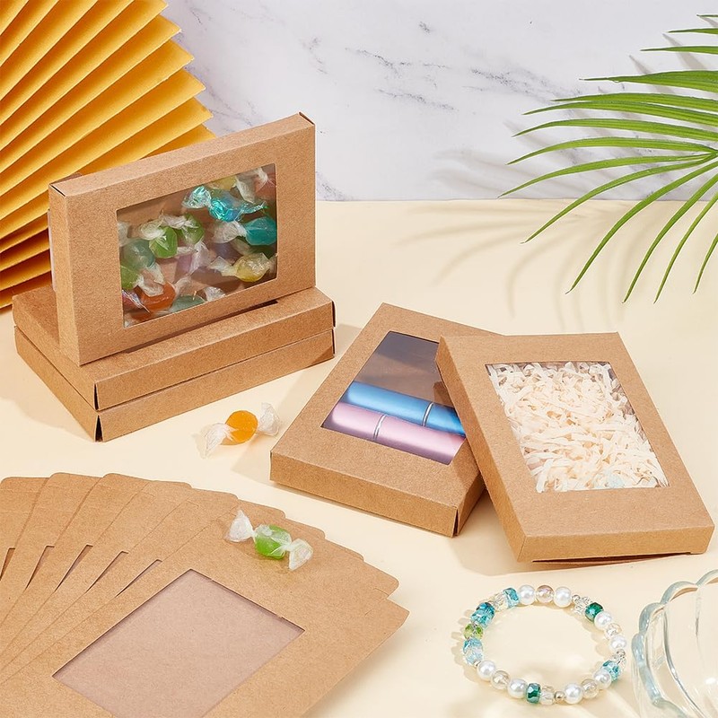OLYCRAFT Pack of 24 Paper Boxes with Clear Window 12.5 x 8.5 x 1.5 cm Gift Boxes Made of BurlyWood Cardboard Jewellery Box Small Shipping Boxes for Packaging Gifts and Packaging Small Items