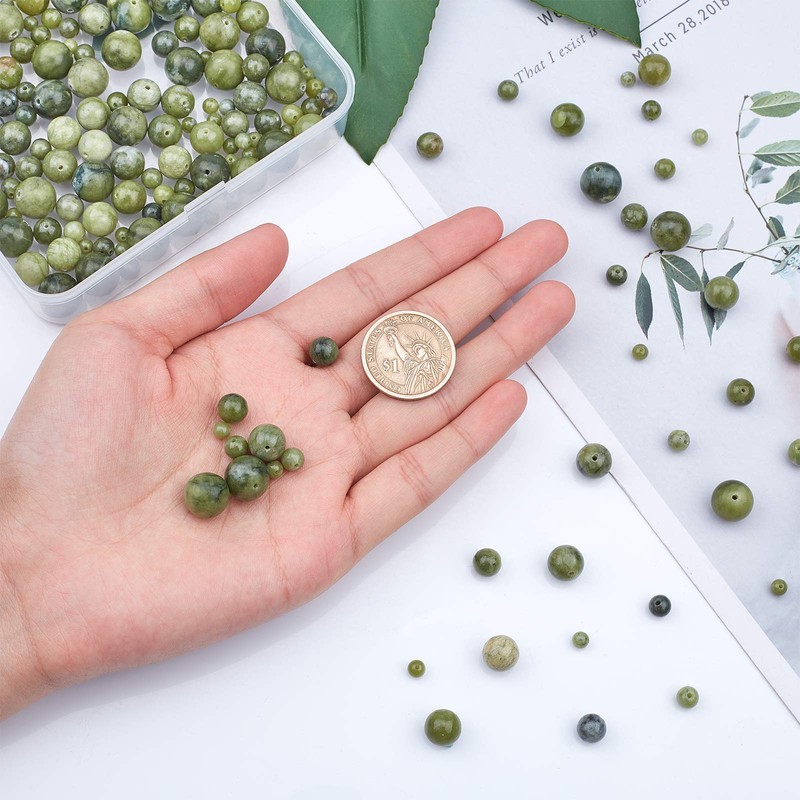 OLYCRAFT Pack of 273 Natural TaiWan Jade Beads Green Rock Beads 4 mm 6 mm 8 mm 10 mm 12 mm Natural Jasper Beads Round Loose Gemstone Beads Energy Stone for Bracelet Necklace Jewellery Making