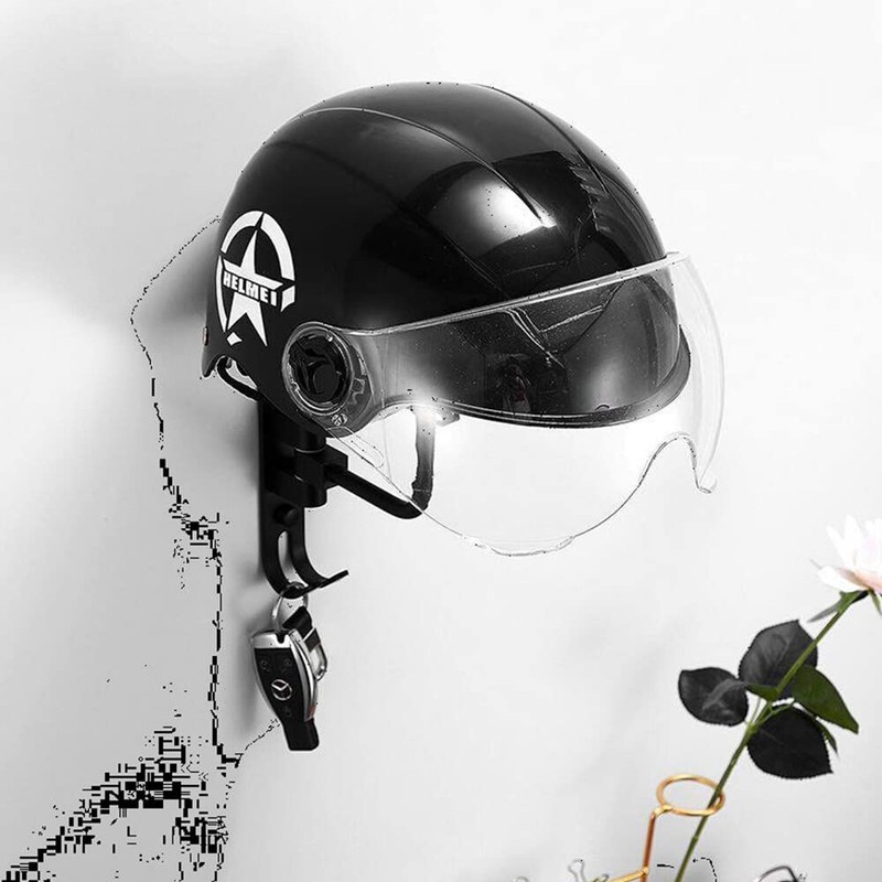 - 2 options: You can choose to stick this wall mounted helmet holder to the wall, and it can be used after it is stabilized, or you can choose to fix it to the wall with drilling holes