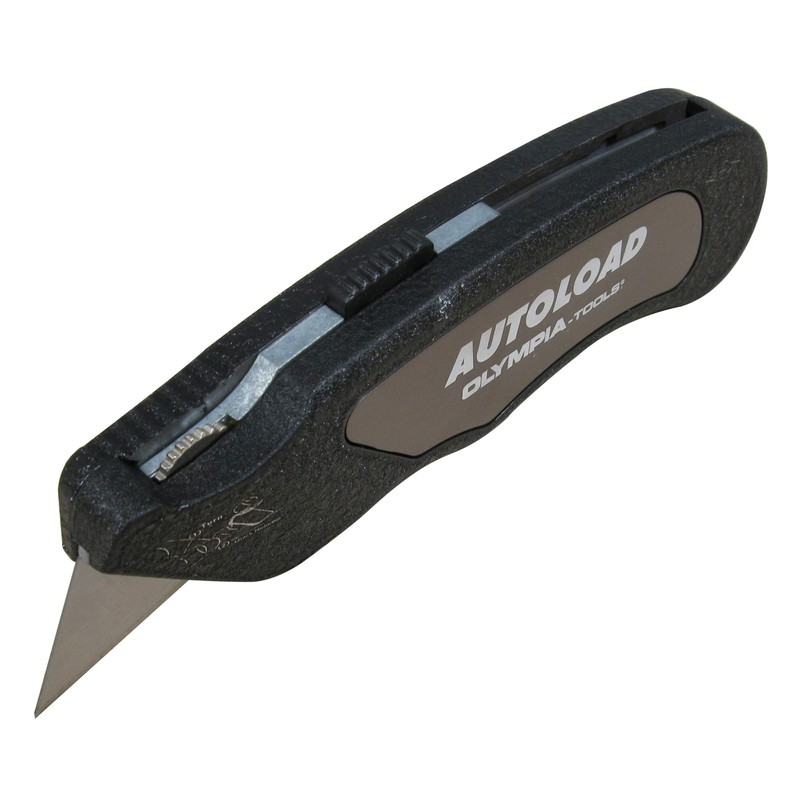 - AUTOLOAD TURBOKNIFE: This compact and powder-coated Turboknife automatically loads new blade. Convenient single-hand operation and anti-slip ergonomic grip. Five blade storage in handle.