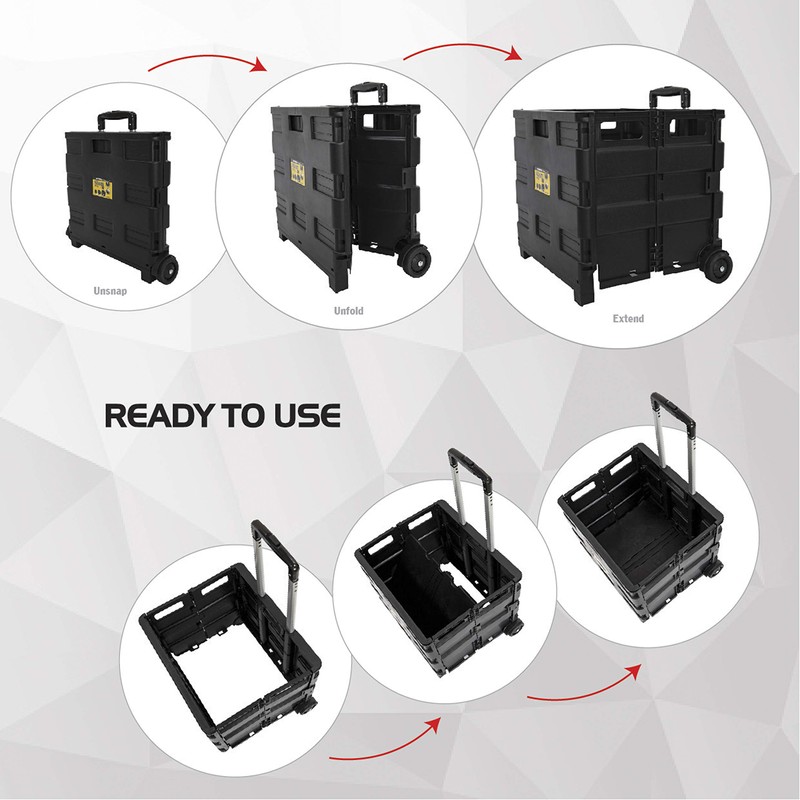 - HEAVY DUTY PORTABLE CRATE: Olympia Tools 85-010 Grand Pack-N-Roll is a portable folding cart great for the job site, travel, home and garden, shopping, office use, and more. Features telescopic aluminum handle with 39.5" max extension.