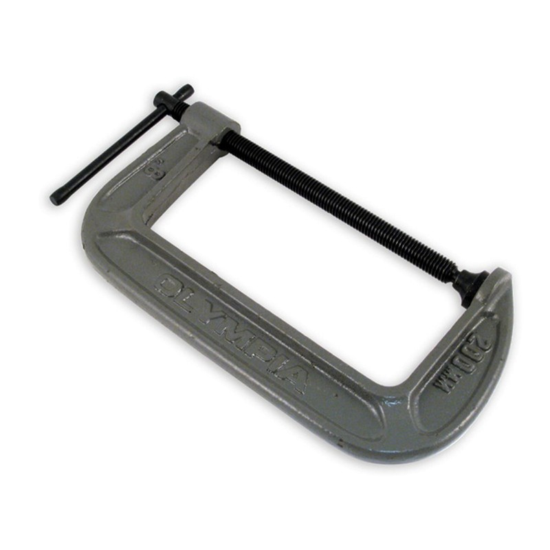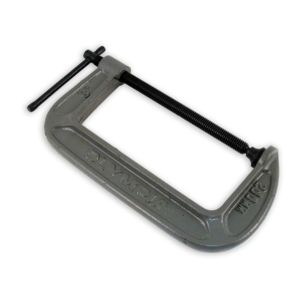 OLYMPIA TOOLS 38-148 8" x 4" C-CLAMP Size: 8" x 4" Features: - Malleable cast frame - Black Oxide Spindle and Handle - Heavy Duty Swivel Saddle - Throat Depth 4"