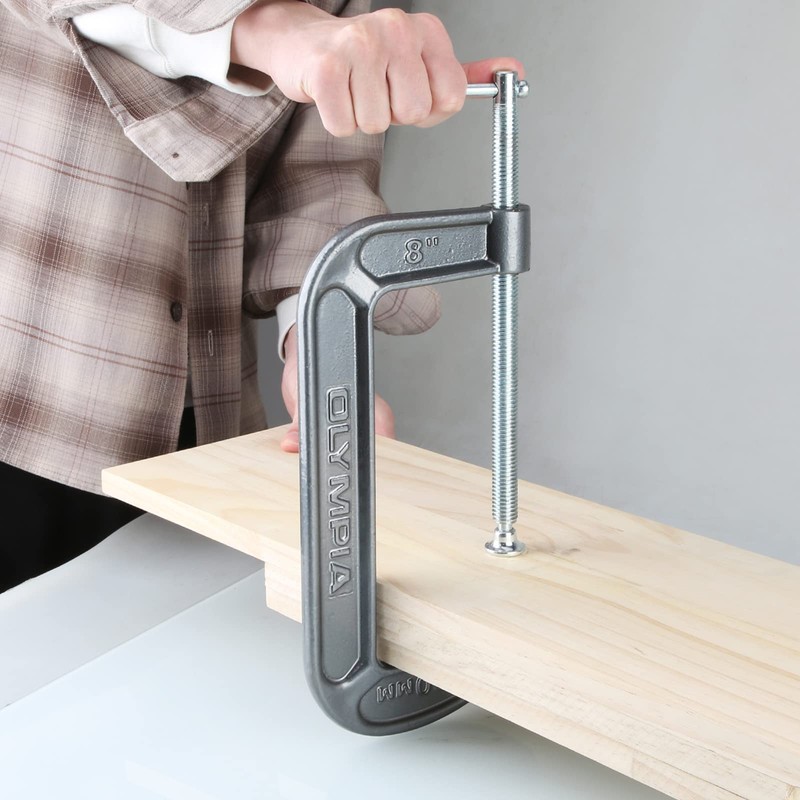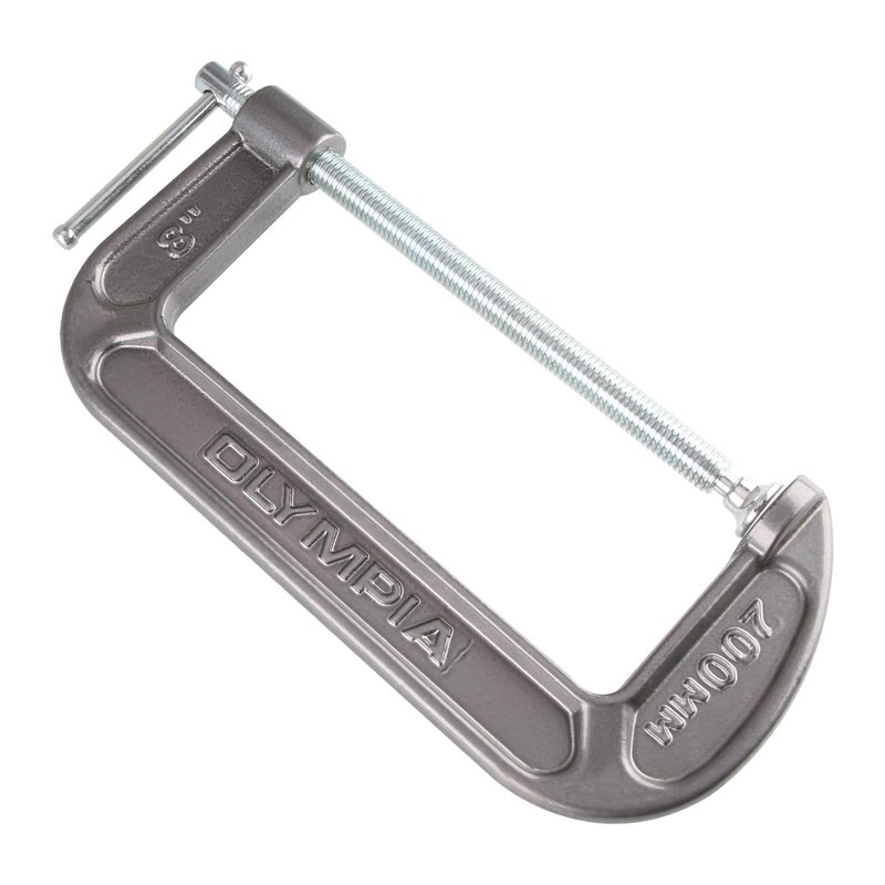 "STEEL C-CLAMP: This 8"" by 4"" C-clamp is ideal for home, garage or woodshop. It features durable steel construction and a smooth adjusting swivel that makes precision clamping a breeze.ERGONOMIC DESIGN: Work for hours with easy handling. Our high friction steel frame makes the clamp user friendly. We aim to deliver you strong hold and pressure grip to prevent slippage during use.MADE TO LAST: Our durable and long-lasting tools help you with home, garage & industrial projects. With professional-grade quality, easily repair & fix issues with our tool cabinet essentials.THE RIGHT TOOL FOR THE JOB: We engineer a range of bolt cutters, clamps, chisels, folding carts, hammers, pliers, saws, screwdrivers, tape measures, utility knives, vises, bolt cutters, saws & wrenches.SUPERIOR INSTRUMENTS: Olympia Tools provides quality & innovative hand & specialty tools, tool accessories & outdoor equipment for construction, woodworking, mechanical maintenance & home repair. OLYMPIA TOOLS 38-148 8"" x 4"" C-CLAMP Size: 8"" x 4"" Features: - Malleable cast frame - Black Oxide Spindle and Handle - Heavy Duty Swivel Saddle - Throat Depth 4"""