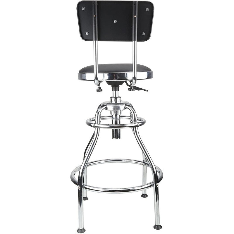 The tough vinyl padding is Stain- and spill-resistant so your seat wipes clean easily and is always looking great. The adjustable, high-traction feet give you a stable base, while the foot rests provide added strength and a comfy place to rest your legs. A high-polish chrome finish helps to extend the life of your seat by resisting rust and corrosion. Padded vinyl seat features a backrest for comfort stool rotates 360 for maximum flexibility sturdy top and bottom rings encircle the frame for durability slip resistant fee