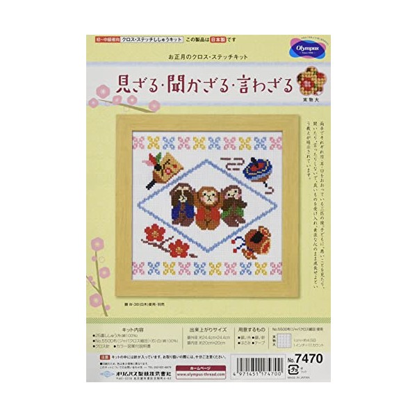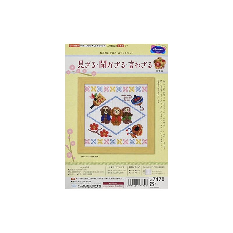 オリムパス製絲(Olympus Thread) クロスステッチ 刺しゅうキット 干支 見ざる・聞かざる・言わざる 7470
