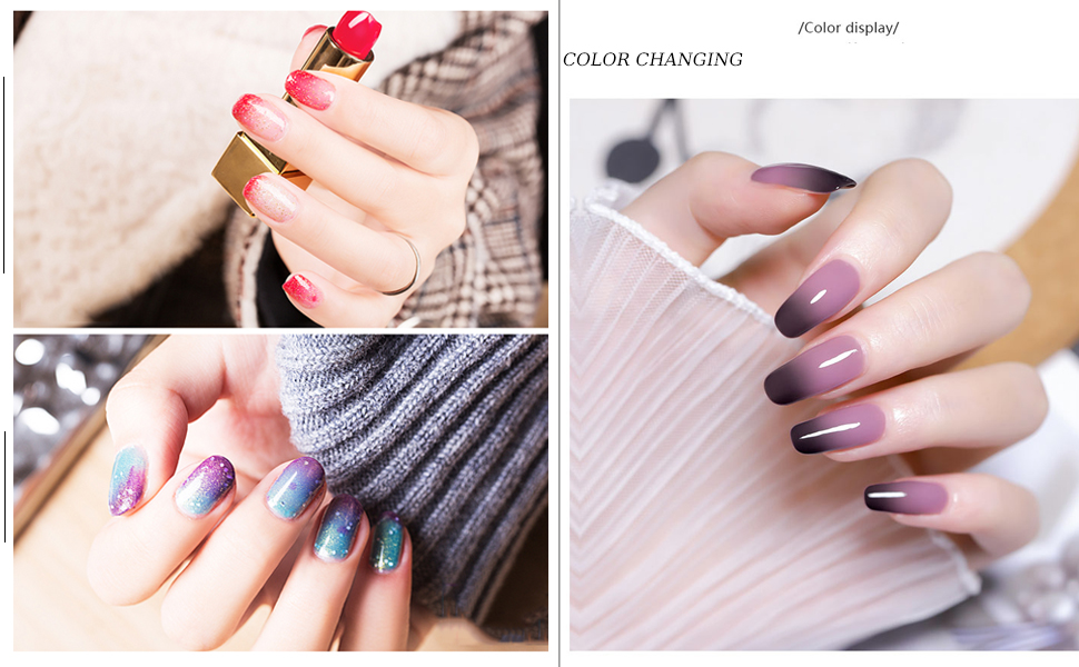 - 【4 Set Thermal Semi-Permanent Nail Polish】:4 set semi-permanent chameleon nail polish, beautiful popular trending colors give your nails an attractive look; Suitable for all seasons and everyday wear.