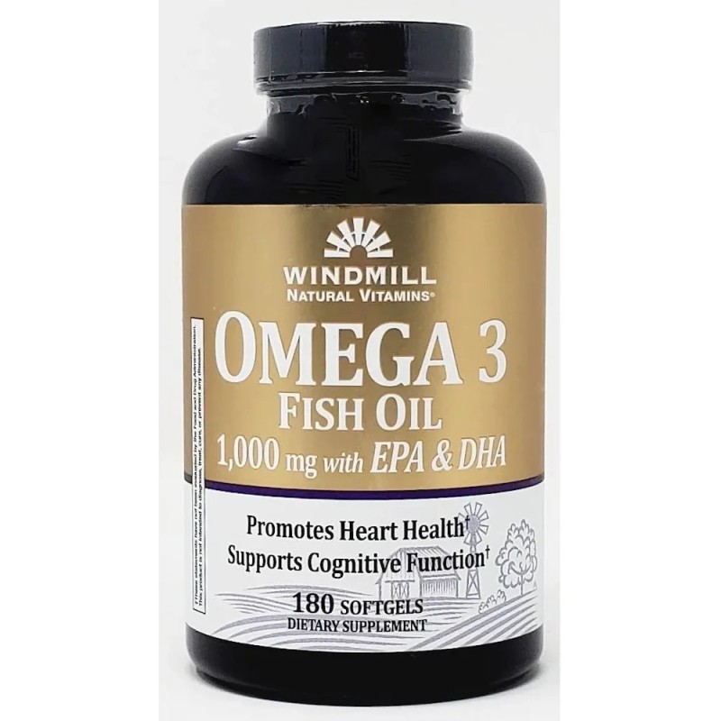 ¡Potencia tu bienestar con el Omega 3 de Windmill! 🚀 Este frasco gigante de 180 softgels de 1000mg te asegura una dosis duradera y potente de salud. Cada cápsula está cargada con los esenciales EPA y DHA, ¡los superhéroes para tu cuerpo y mente! 🦸♂️ Imagina que están trabajando incansablemente para proteger tu corazón ❤️, manteniendo su ritmo fuerte y constante. Pero no solo eso, ¡son el combustible definitivo para tu cerebro 🧠! Piensa en una memoria más nítida, una concentración inquebrantable y esa claridad mental que te impulsa a alcanzar tus metas 🎯. Y lo mejor de todo es que son sin sabor 🚫👅, para que puedas disfrutarlos sin molestias. Además, brindan soporte para una visión saludable 👀 y ayudan a reducir la inflamación en todo tu cuerpo, brindándote una sensación de comodidad y equilibrio. ¡Un impulso diario para sentirte más vital, energético y listo para enfrentar el día! ✨