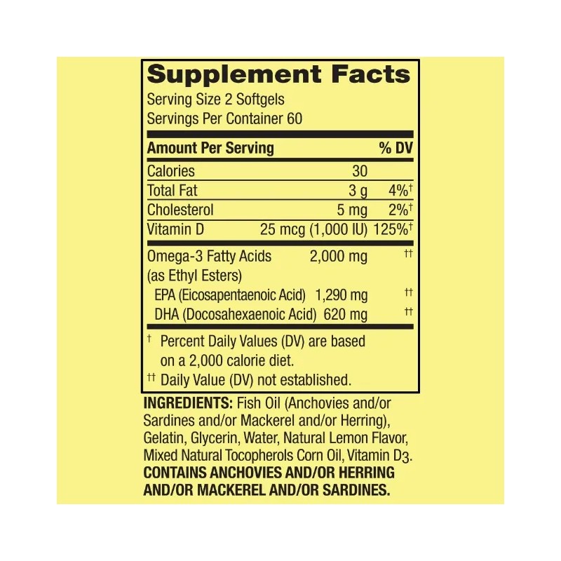 Omega-3 2000 Mg 120 Capsulas Fish Oil Spring Valley Salud Sabor Lemon