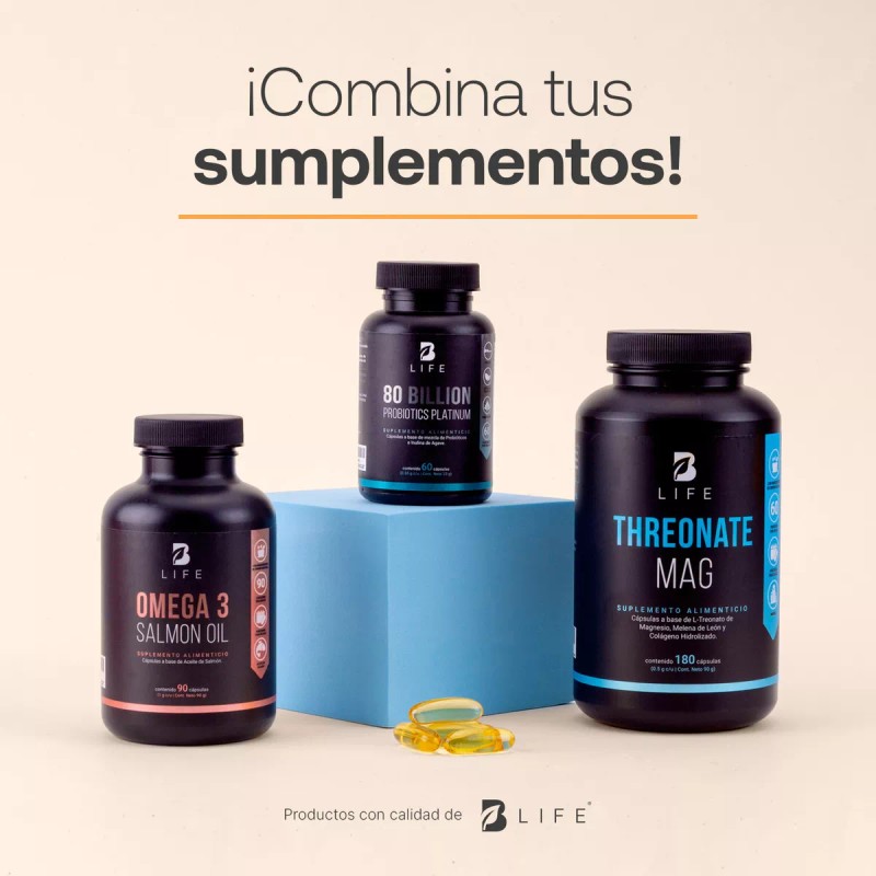 Descripción Limpia: ¡Disfruta la formulación de Omega 3 Salmon Oil B Life! Diseñada a base 1000 mg de Aceite Puro de Salmón, en comparación con otras fórmulas que solo contienen 450 mg. Cada cápsula aporta Ácido Eicosapentaenoico (EPA) y Docosahexaenoico (DHA). Dos ácidos grasos esenciales para ti. Contiene 90 cápsulas.