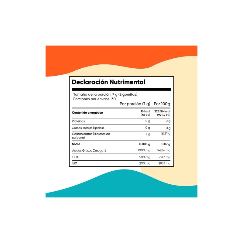 FUENTE CONCENTRADA DE OMEGA 3 - Cada porción de nuestras gomitas de Omega 3 proporciona 1000 mg de Fish Oil, incluyendo 500 mg de DHA y 200 mg de EPA, dos ácidos grasos esenciales conocidos por su importancia en el bienestar diario. Esta formulación balanceada asegura un aporte adecuado de estos nutrientes en una forma práctica y deliciosa, ideal para quienes desean complementar su rutina con una fuente de alta calidad de Omega 3.