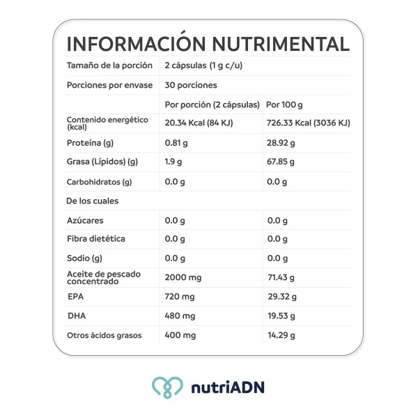 Omega 3 Support By Nutriadn es un suplemento nutricional de alta calidad que te ayudará a mantener una vida saludable. Con su fórmula especial de EPA y DHA, obtendrás todos los beneficios del omega 3 en cada porción. Este producto viene en un práctico envase de botella con 60 unidades de SoftGel, lo que te garantiza un suministro para un mes completo. Cada unidad tiene un peso de 50 g, lo que facilita su consumo diario. Además, su formato de SoftGel hace que sea fácil de tragar y digerir. Con Omega 3 Support By Nutriadn, podrás disfrutar de los valores nutricionales necesarios para mantener una dieta equilibrada, con solo 20.34kcal por porción. No importa si eres vegano o si tienes intolerancia al gluten, este suplemento es apto para todos. No esperes más y aprovecha los beneficios de Omega 3 Support By Nutriadn para mejorar tu salud y bienestar.