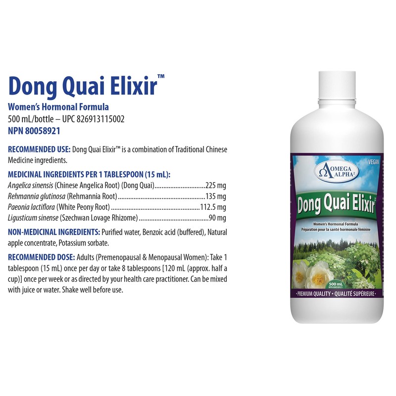 Omega Alpha Dong Quai Elixir, Hormone Balance Supplements for Women, Menopause Supplements for Women, Blood Purifier and Regenerator, PMS Relief, Estrogen Balance Supplement, 500ml, Apple Flavor