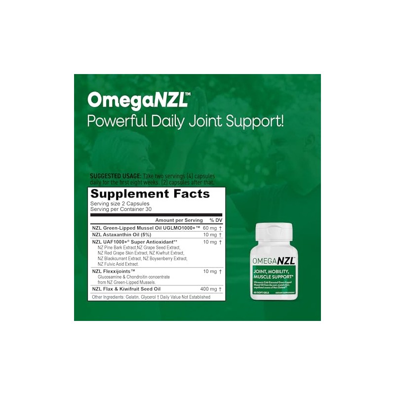OMEGANZL Suplemento original de Omega-3 para el apoyo de las articulaciones, el mejor alivio muscular natural, aceite de mejilln de labios verdes,...