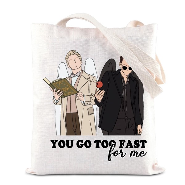 Omens TV Show Inspired Tote Bag Aziraphale and Crowley Lovers Gift Unspeakable Gift for Husbands You Go Too Fast For Me Canvas Bag, For Me Tote Bag