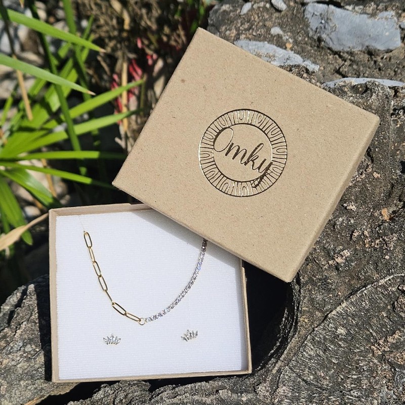 Omky Set de Joyería para Mujer - Juego de Collar y Aretes Acero Inoxidable Chapa Oro 18k Zirconia - Regalo para Mujer