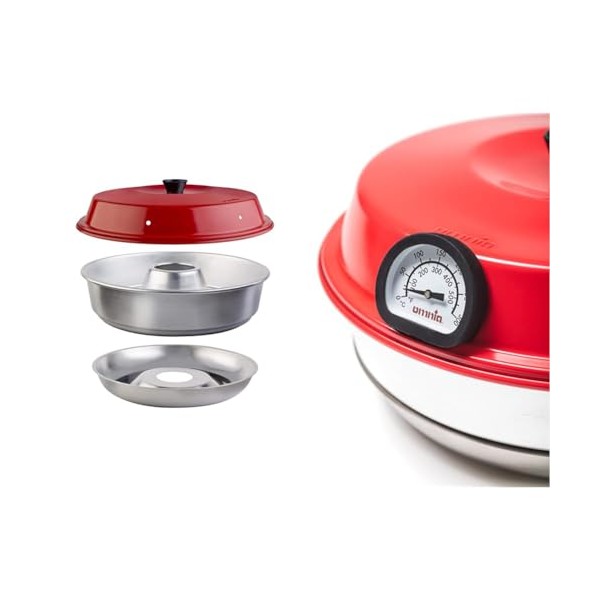 Produkt 2: Das Omnia-Thermometer kann leicht in den Löchern des Deckels befestigt werden. ACHTUNG: In diesem Fall wird die Temperatur im oberen Teil des Ofens gemessen. Unten ist die Temperatur höher. Ein Thermometer im Deckel ändert die Gewichtsverteilung. Seien Sie beim Abheben des Deckels vorsichtig.