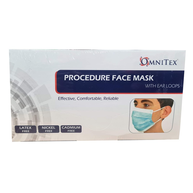 - Omnitex Premium 3Ply dispsoable surgical face masks with Ear loops - British brand, British quality