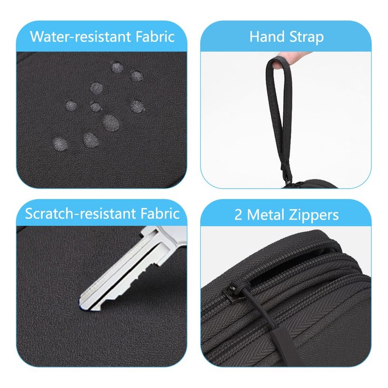 - Practical and Convenient: This travel cable organizer Includes a comfortable hand strap for carrying. Durable smooth zipper secures devices and allows quick access to items
