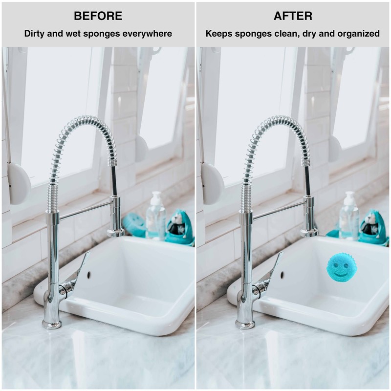 • Space-saving Storage: Our sponge holder creates smart under-sink storage for your round smiley face-shaped sponges, keeping your countertops clean and tidy. Sponges not included.