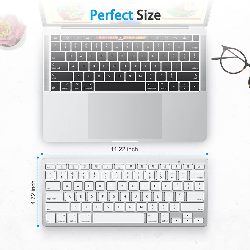 • Stable Bluetooth Connection: This Bluetooth Mac keyboard features a solid Bluetooth connection range that up to 33ft/10m. The slim and refined design makes it a valuable and gainful addition for your MacOS devices.