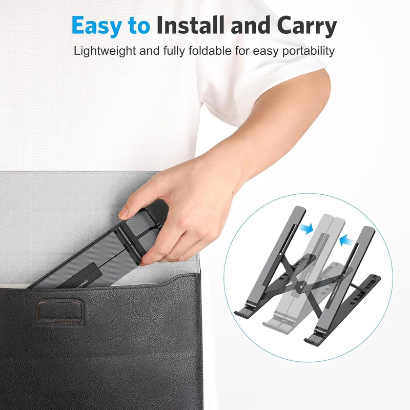 OMOTON Ergonomic Laptop Stand for Desk – 7 Adjustable Angles, Portable ABS Laptop Riser Holder, Foldable Computer Stand Compatible with MacBook, Dell, HP, Lenovo, iPad and All 10-15.6" Laptops