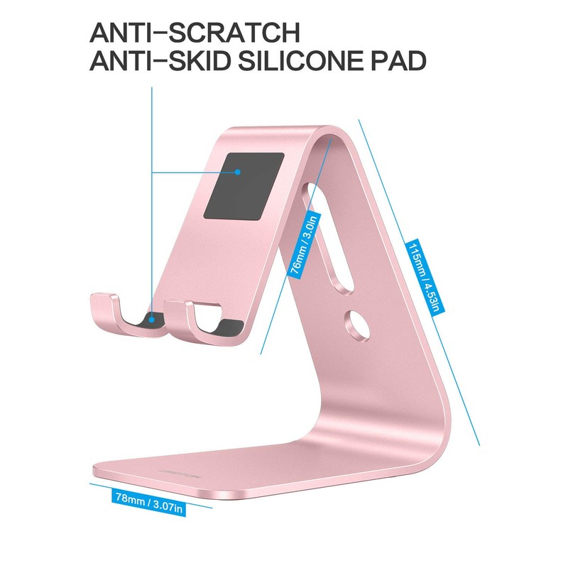 OMOTON OMOTON Upgraded Aluminum Cell Phone Stand for Desk, C1 Durable Cellphone Dock with Protective Pads, Smart Stand Designed for iPhone16, 15/14/13/12 Pro Max XR XS, iPad Mini, Android Phones,Rose Gold